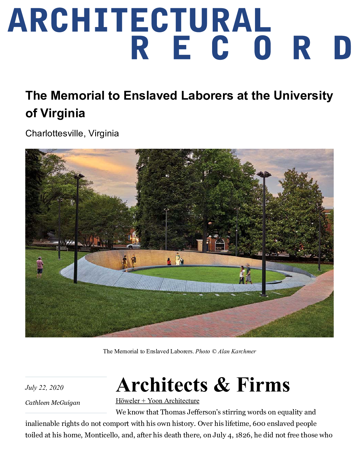 Höweler + Yoon, John Ronan, NADAAA, MOS and Hood Design Studio shortlisted in Fallen Journalists Memorial competition. Daniel Roche. Architect's Newspaper. 16 January 2024.