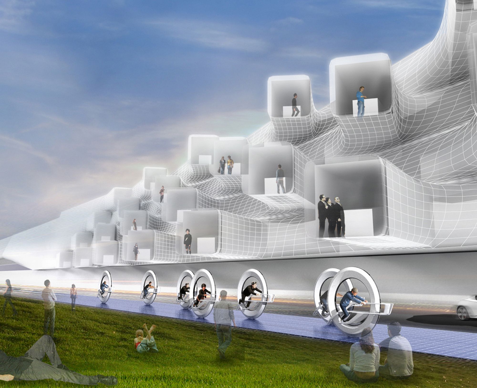 The 2012 Audi Urban Future Award winner, Shareway is a mobility platform and operating system that restructures the relationships between property and access, allowing users to move along efficient mobility networks while remaining free of car and home ownership.