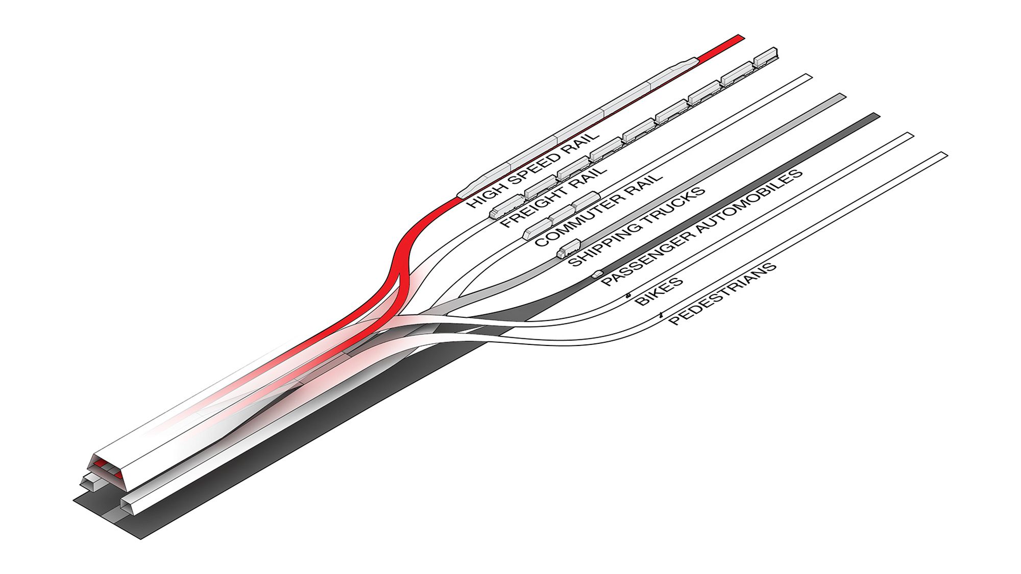 Through a combination of physical infrastructure (hardware) and intelligent networks (software), Shareway makes travel effortless and reconfigures the structure of cities and suburbs. Proximity is a function of time and location.