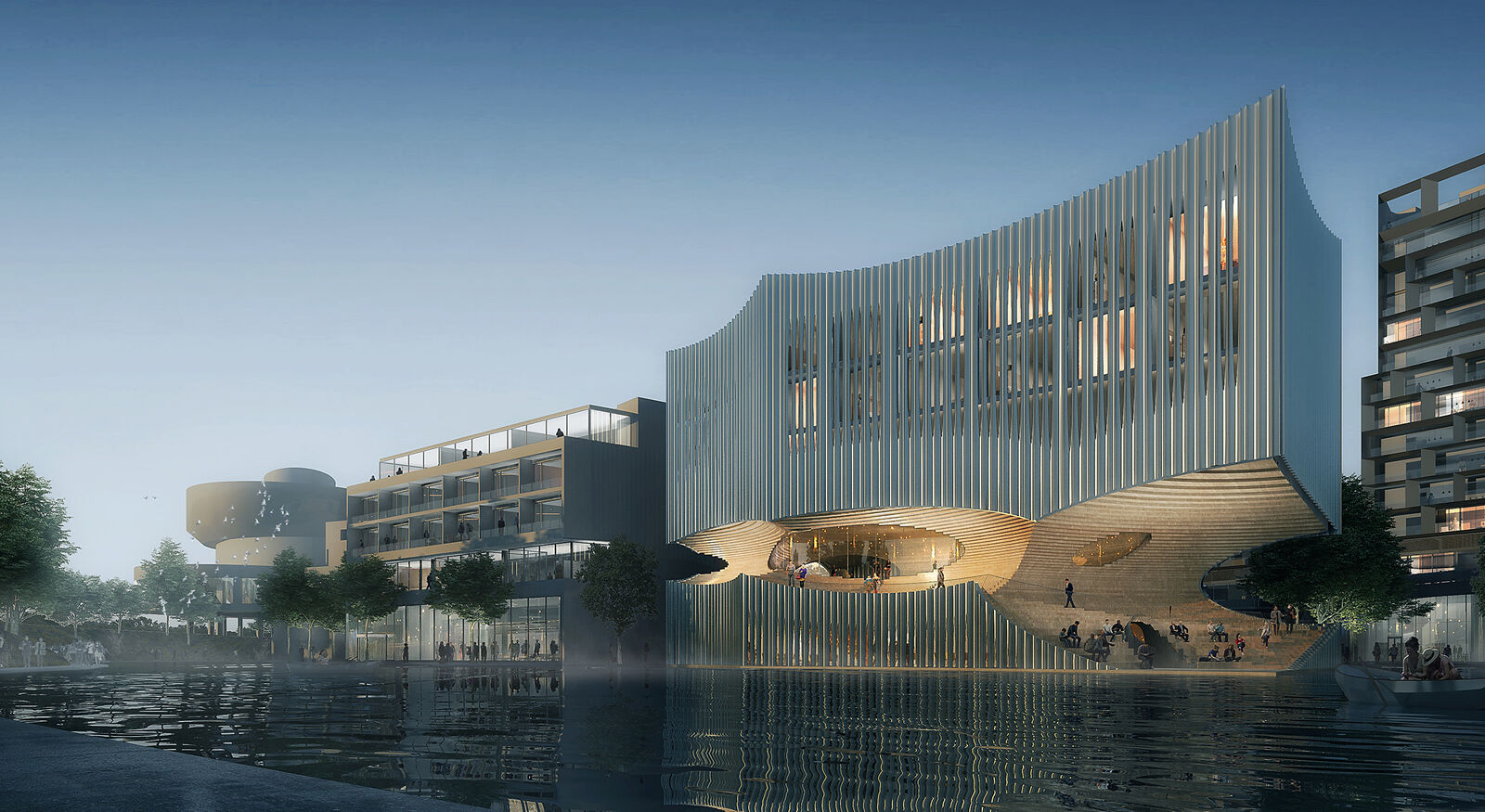 Situated on a new development in South Chengdu, China, the Chengdu Hotel is a yoga destination that seeks to reconnect individuals with their natural surroundings. Set in a spectacular landscape, the building emulates its environment and meditative themes with sweeping and stretched Boolean operations. This carving out of cascaded spherical volumes creates an active, as well as an iconic, public space.