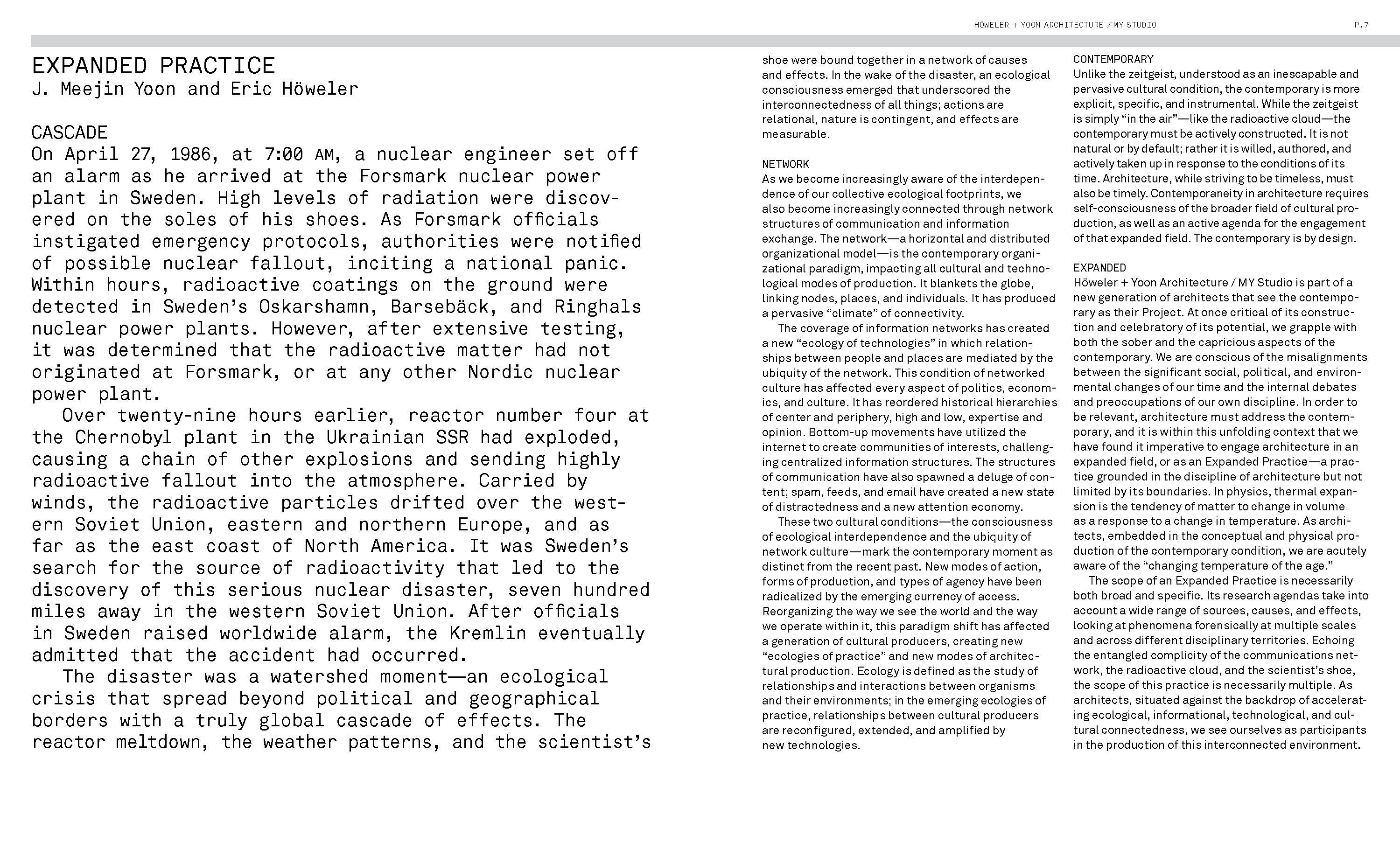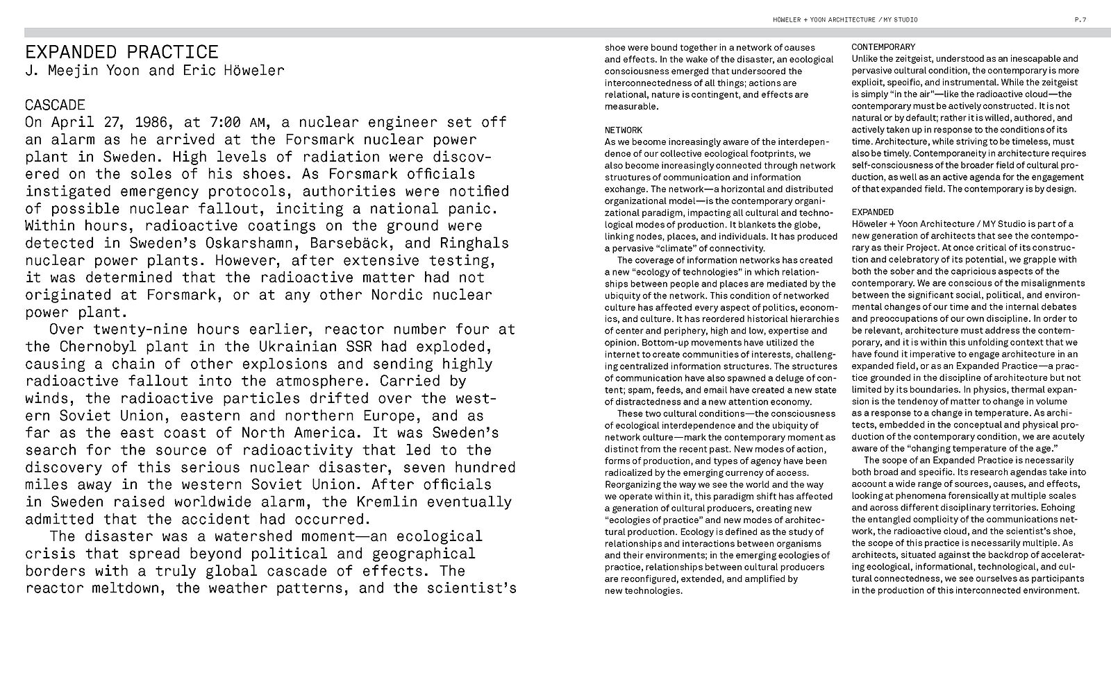 Expanded Practice presents twenty-nine recent projects by this young firm encompassing a broad range of scales and media. The projects, divided into distinct but often overlapping research themes, include a museum courtyard program inspired by the Voronoi cell-packing algorithm (PS1 Loop); an outdoor light installation featuring hovering cones that capture and interact with solar energy, rainwater, and sound (Hover); a garment designed to turn inside out as it unravels (Mobius Dress); and a landscape design that weaves technology and texture into an integrated and interactive landscape (Tripanel). Packed with drawings, diagrams, and photographs of each project's design process, Expanded Practice provides an inspirational look into one of the most exciting young firms working in architecture today.
