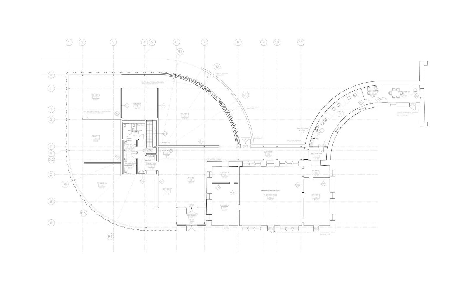 The Lipsey Architecture Center Buffalo is a new extension to the Nationally Registered Richardson Olmsted campus, providing a dedicated exhibition and gathering space for the celebration and exploration of the rich architectural legacy of Buffalo and Western New York. The project consists of two parts: an adaptive reuse of the ca.1875 “Male Kitchen” with its distinctively curved connector, and a new 8500 SF glass pavilion to mirror and complete the 19th century building.