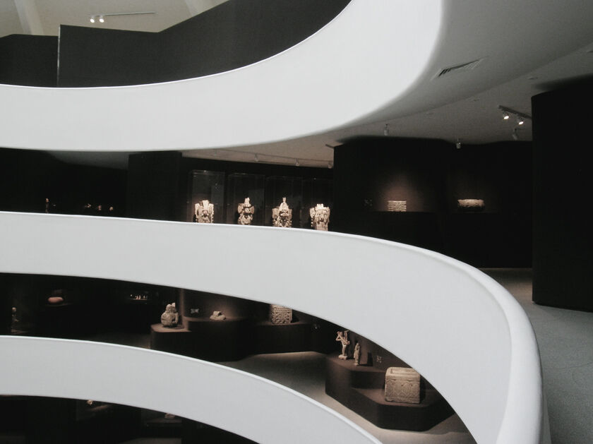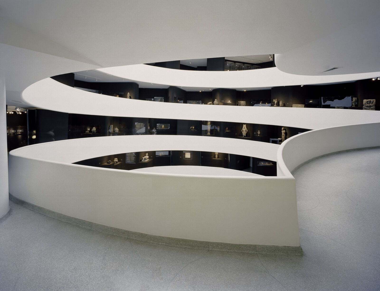 Creating a continuous experience along the ramp and focusing on the experience of the perimeter and periphery, as opposed to the center, the project creates a smooth non-uniform display system that organizes the artifacts at their appropriate scales while highlighting the curatorial themes and sub-themes of the exhibition.