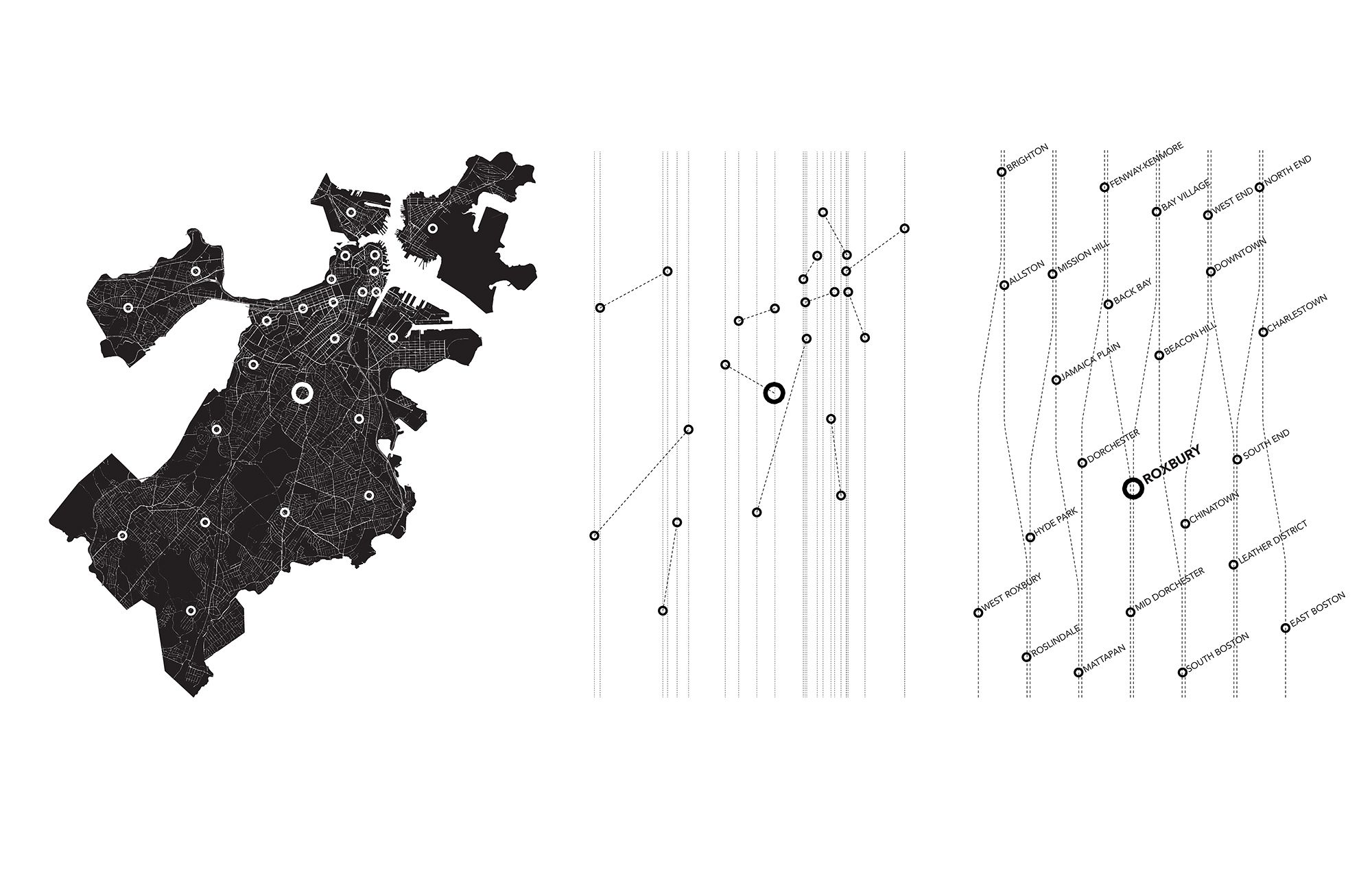 The Crisscross Signal Spire marks Dudley Square as a historic urban crossroads and acts as a sculptural beacon that ties past traditions to present-day communication habits. Taking cues from the role of church spires and clock towers, which communicated and marked time through bell chimes or illuminated clock faces, the Crisscross Signal Spire creates a contemporary, three-dimensional impetus for Boston’s municipal government and its citizens.